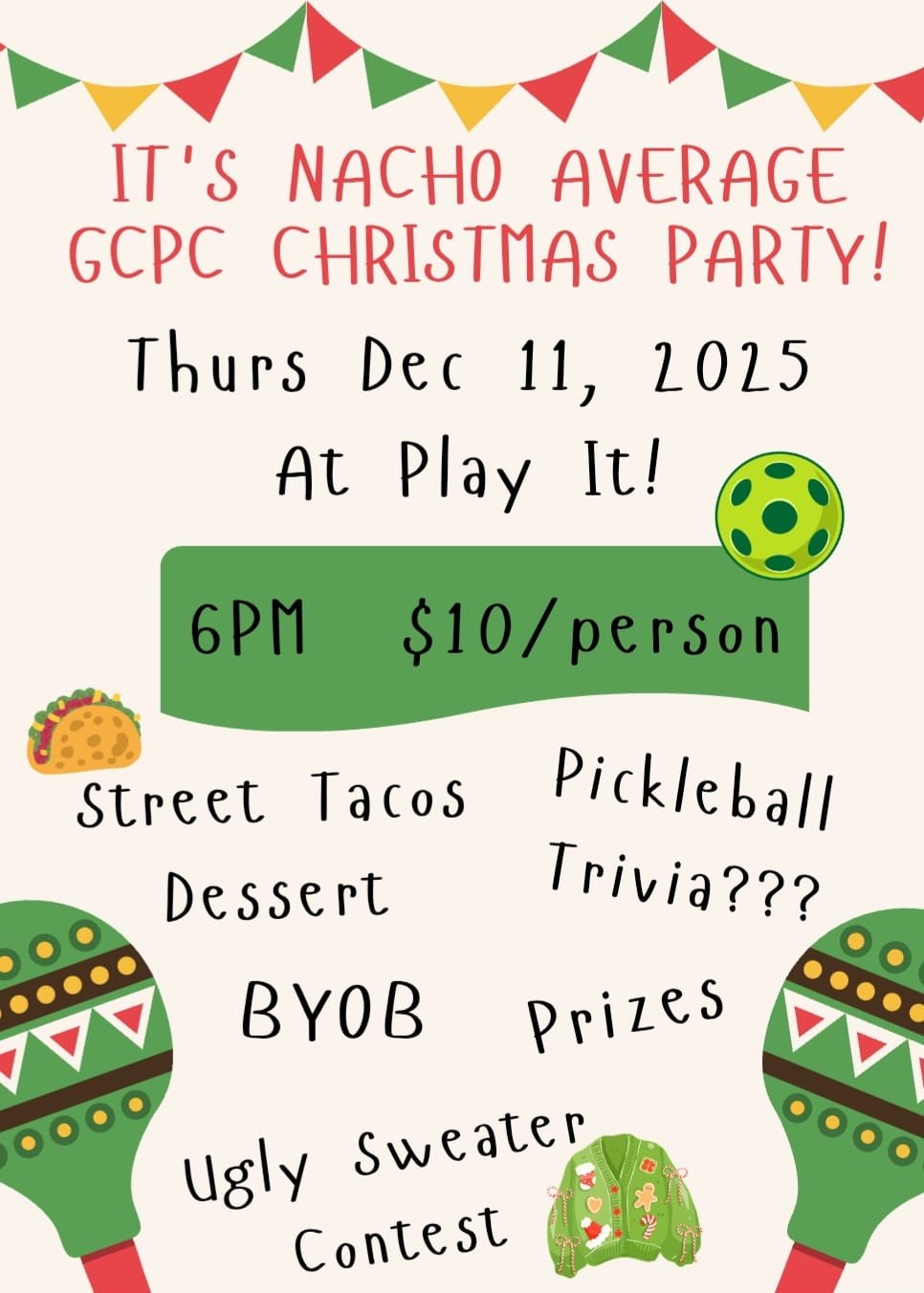 Join the GCPC for its annual holiday party with dinner, desserts, prizes, games, and laughs! And we encourage everyone to wear their best ugly holiday sweater for our competition.